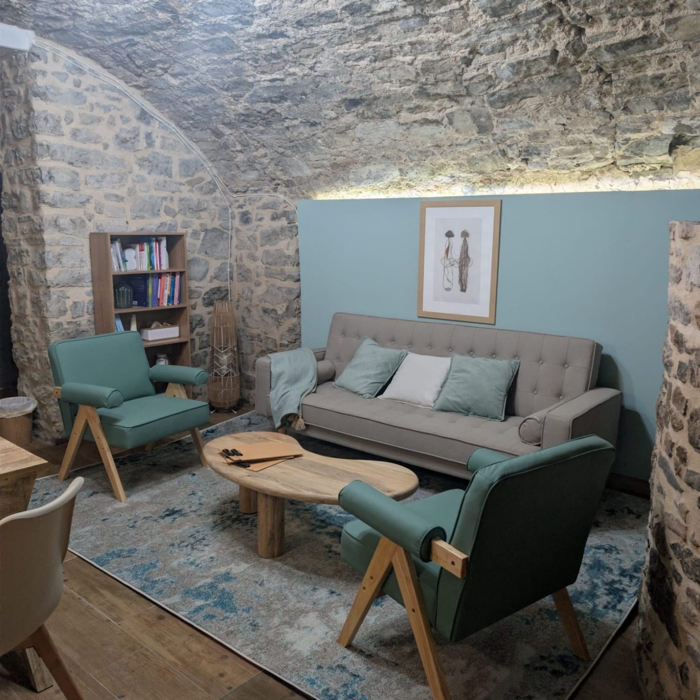 Nuestras salas están diseñadas para garantizar intimidad y confort: una sala relajante con diván y una amplia para sesiones de grupo, creando el ambiente ideal para tu terapia.